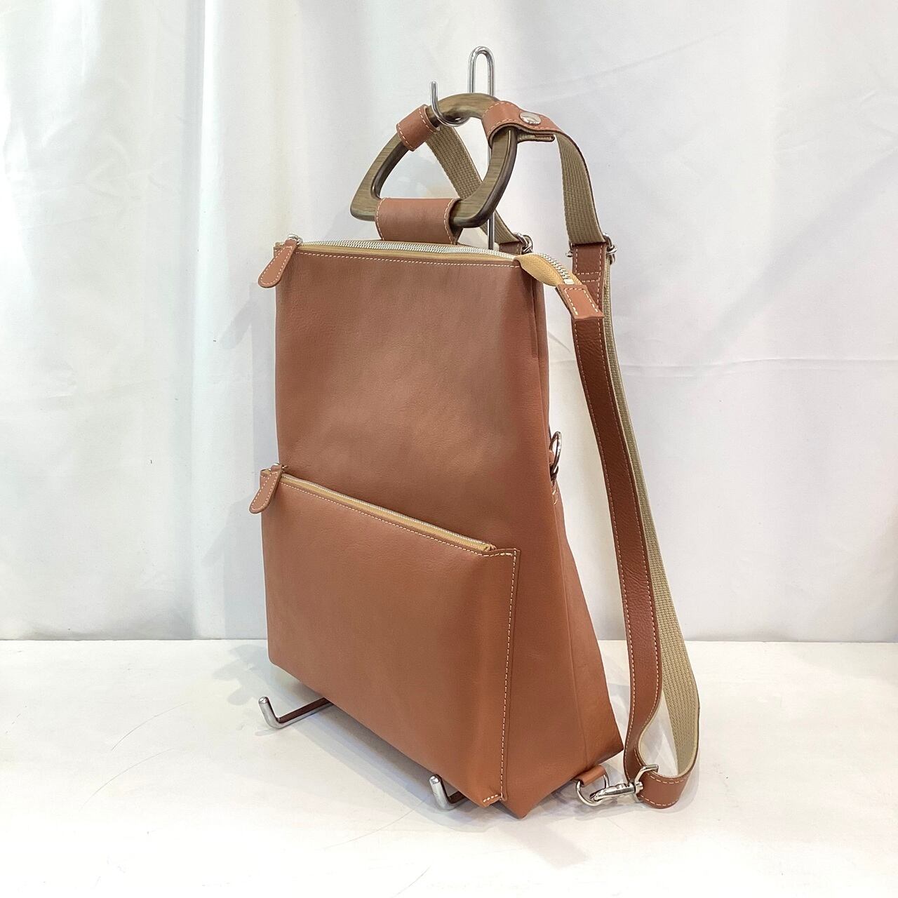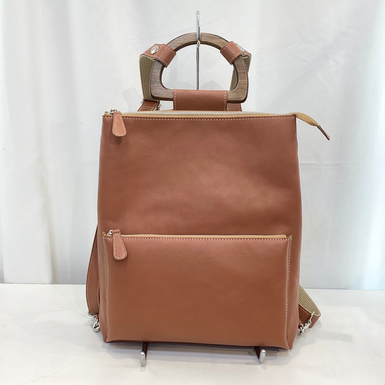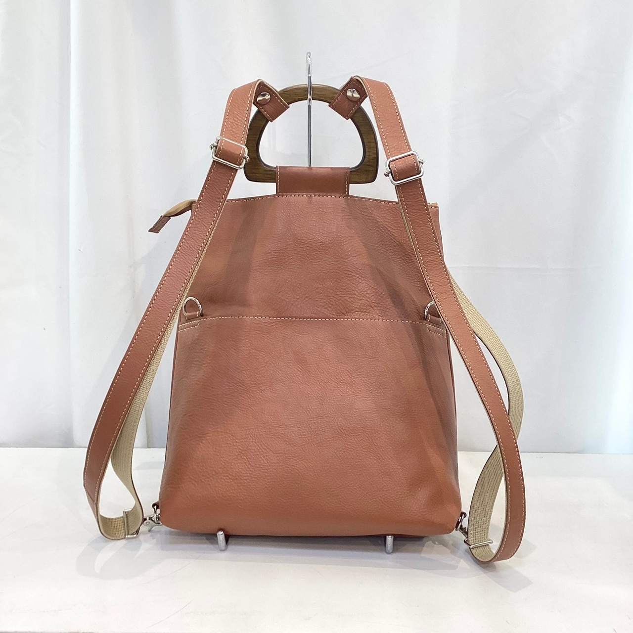 木製ハンドルと牛革を組み合わせたユニークなリュックです。
