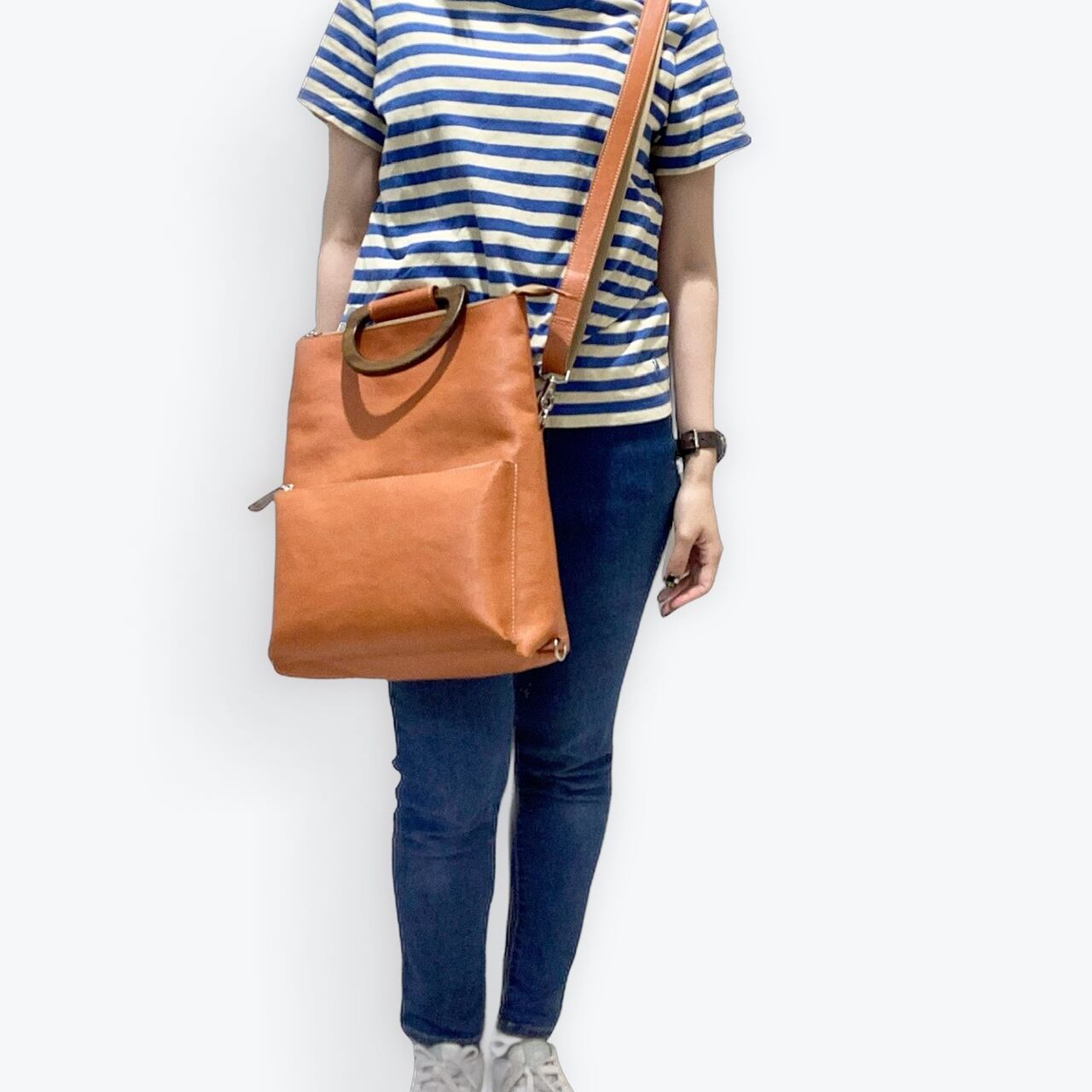 ベルトの付け方により、ショルダーバッグやトートバッグとしてもお使いいただけます。