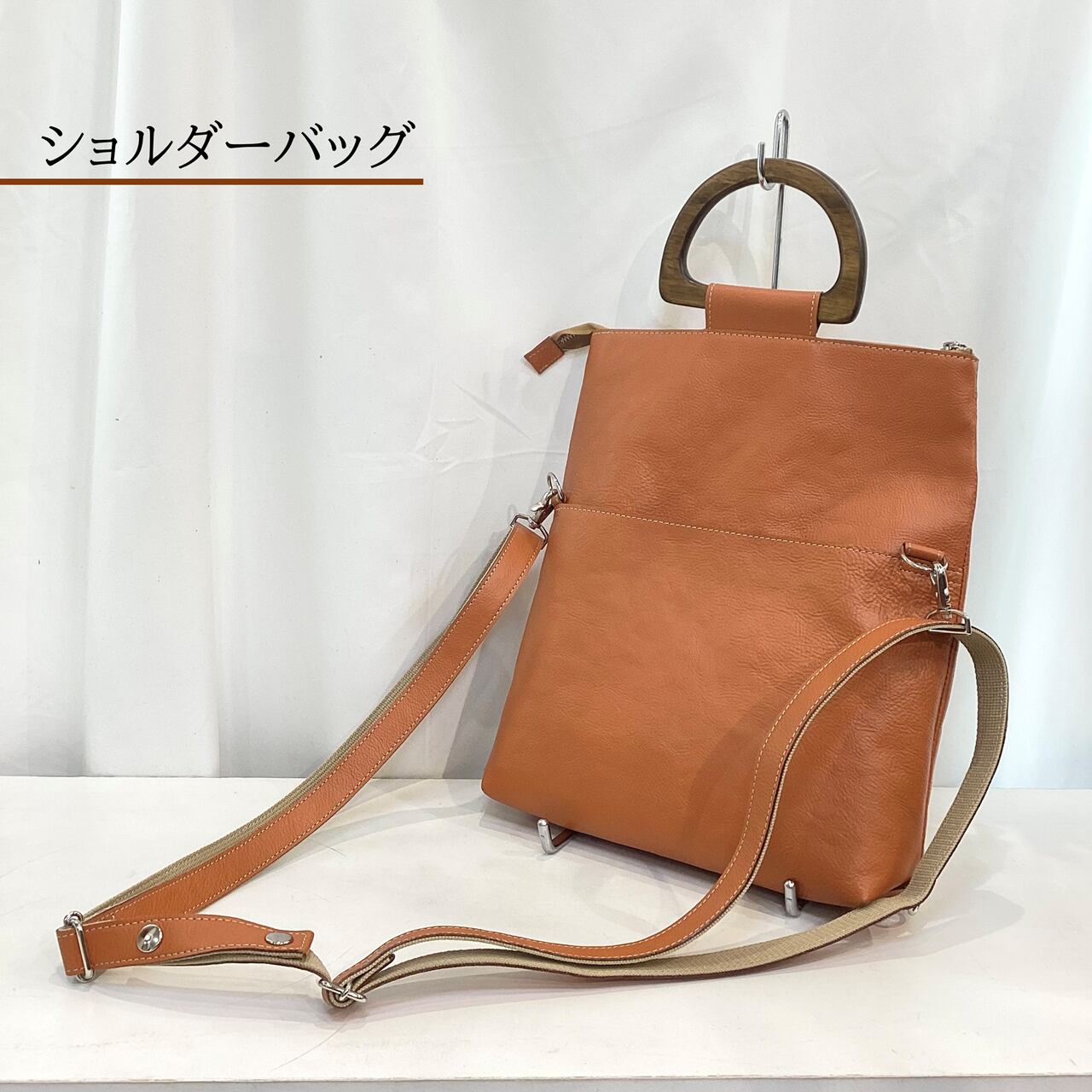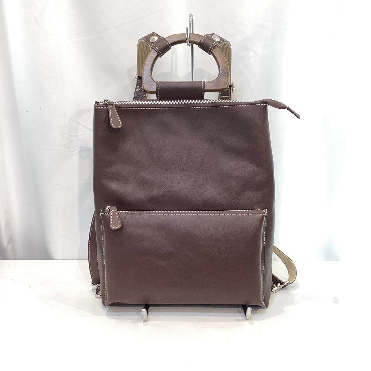 木製ハンドルと牛革を組み合わせたユニークなリュックです。