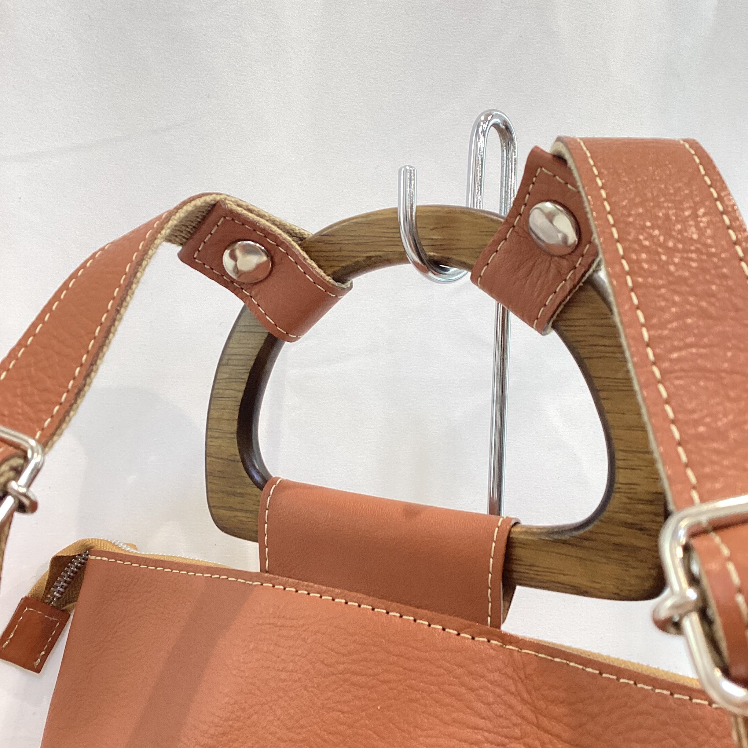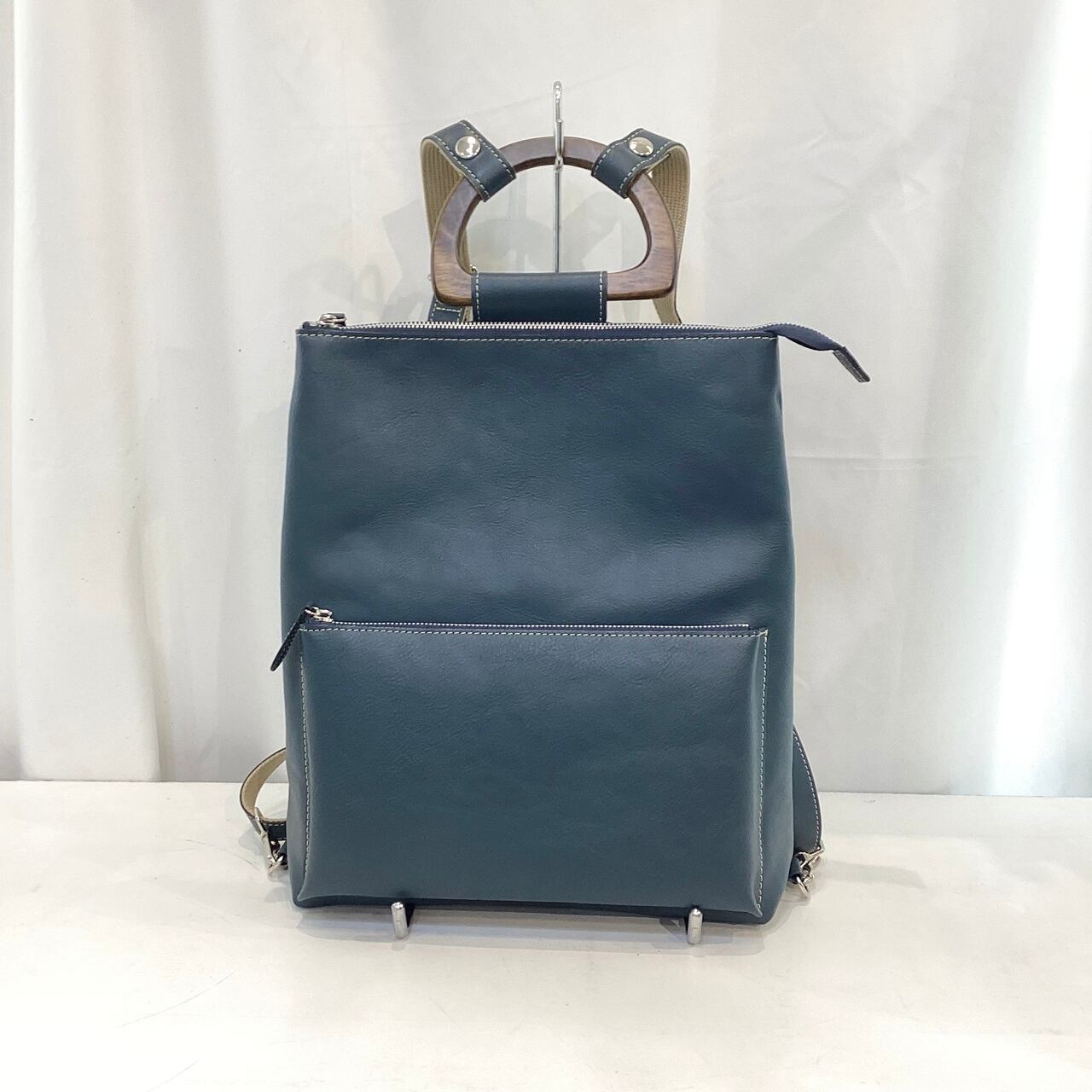木製ハンドルと牛革を組み合わせたユニークなリュックです。