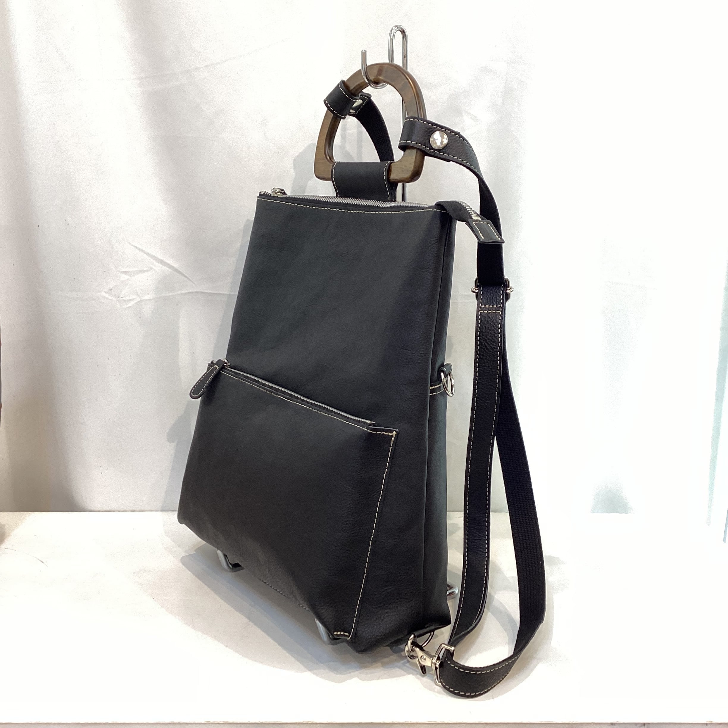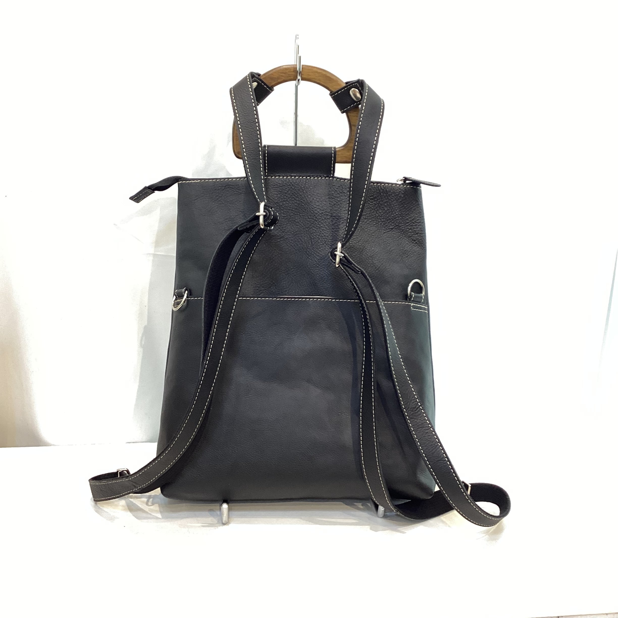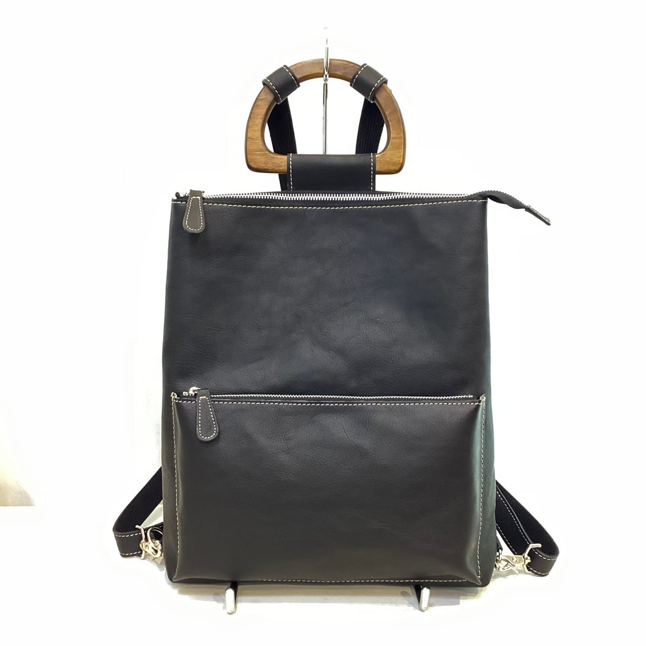 木製ハンドルと牛革を組み合わせたユニークなリュックです。