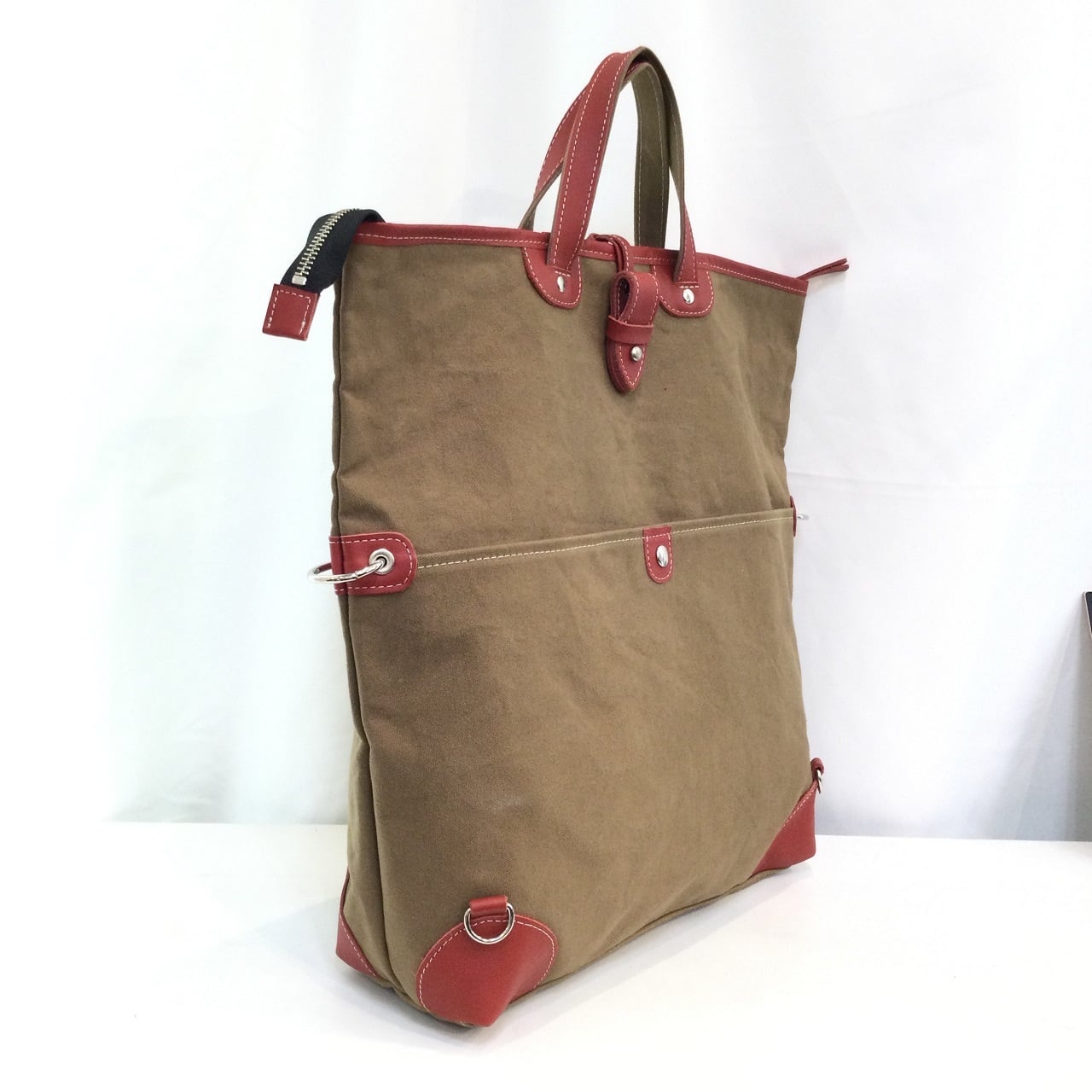 帆布革付属 3wayバッグ 天ファスナー付き(レッド) 116