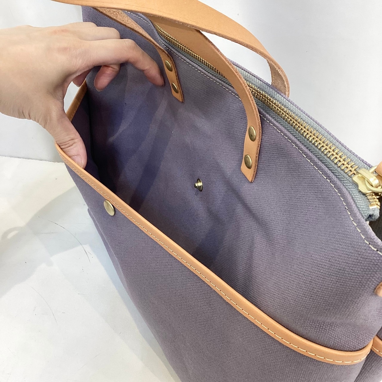 優しい色味の帆布ハンドバッグです。