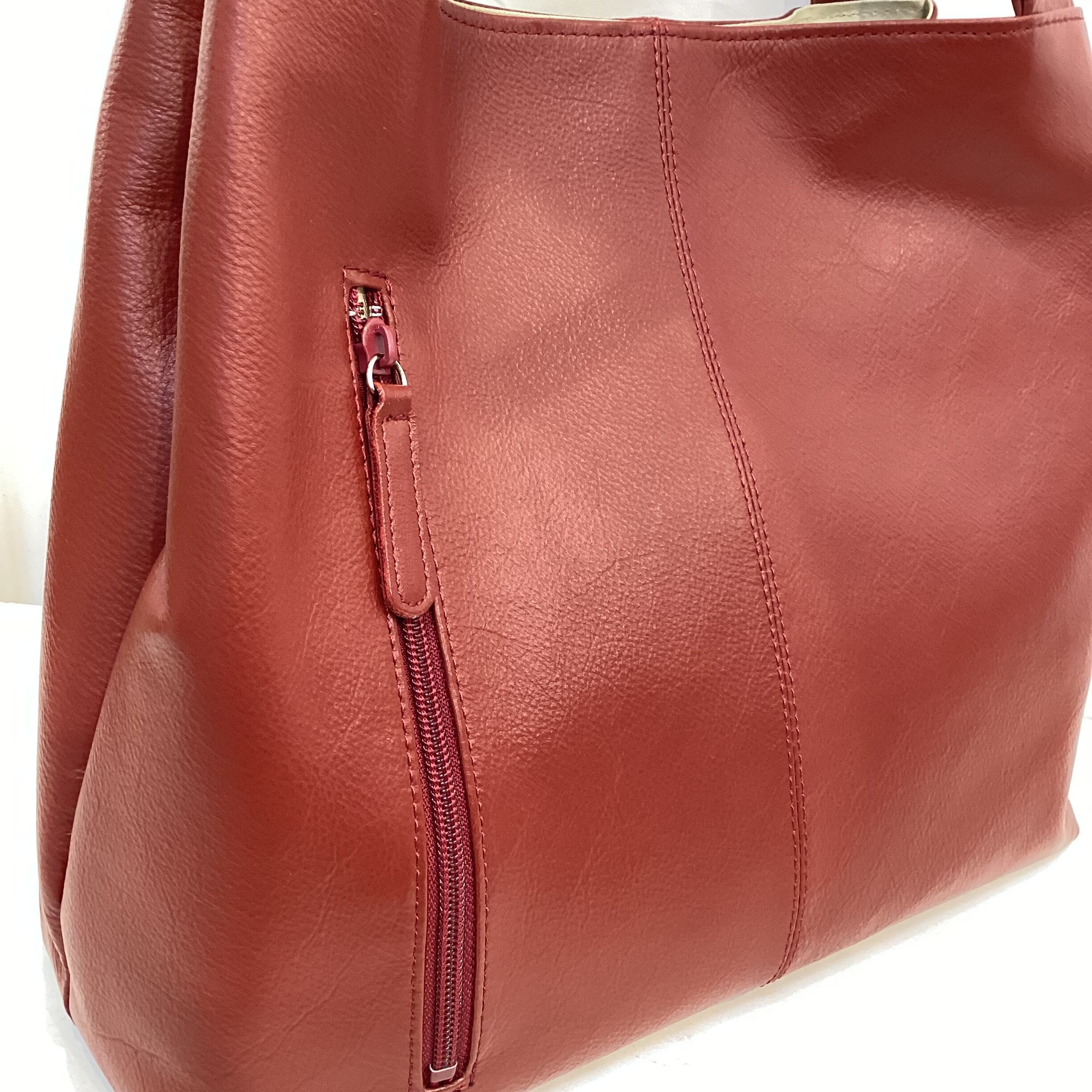 ソフト牛革ハンドバッグ(大)ワインレッド (限定色) 3267