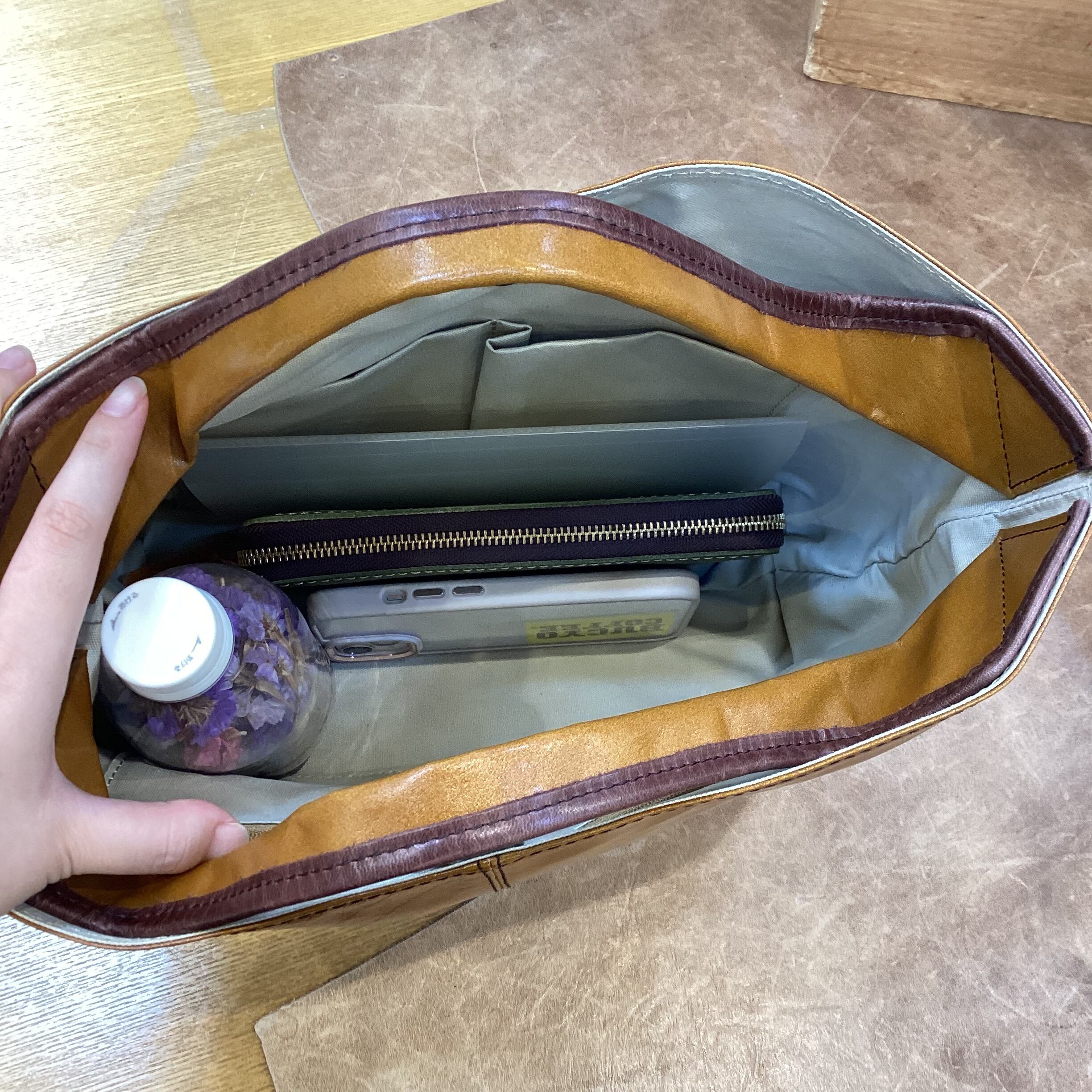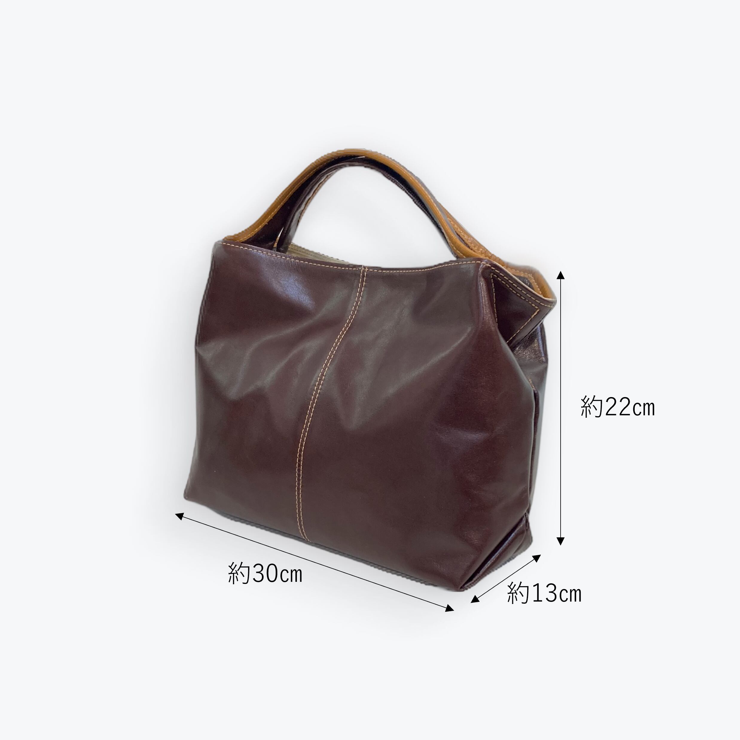 紙のような軽さが自慢の牛革ハンドバックです!荷物が多くて、バッグは軽いほうがいいとお考えのあなたにピッタリです。