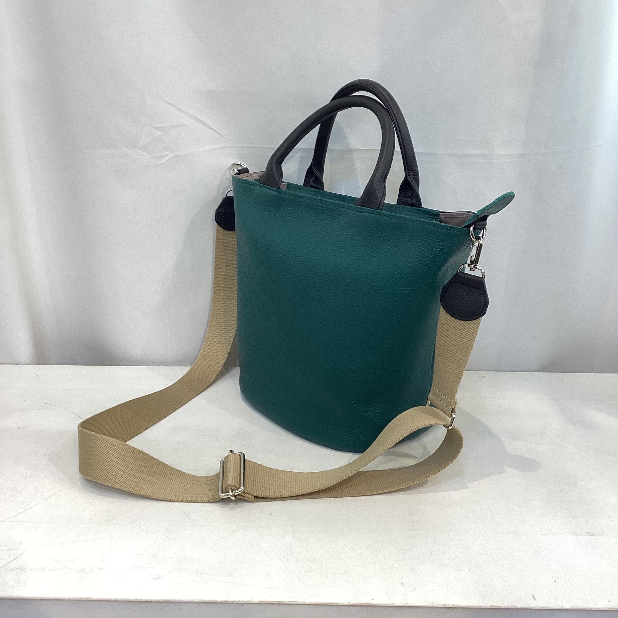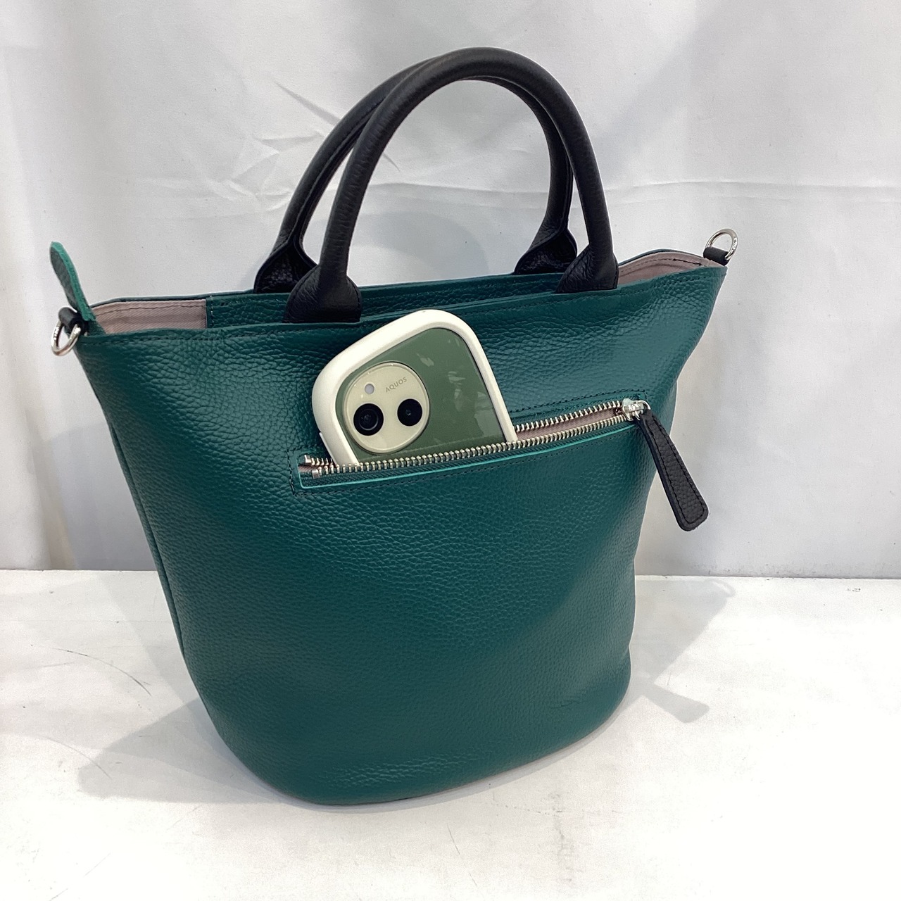 バケツ型のデザインとやわらかい革質がマッチした可愛らしいバッグです。