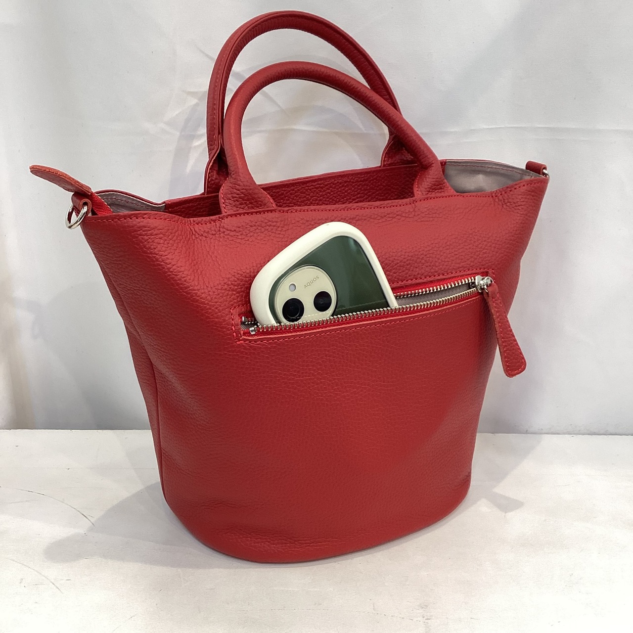 バケツ型のデザインとやわらかい革質がマッチした可愛らしいバッグです。