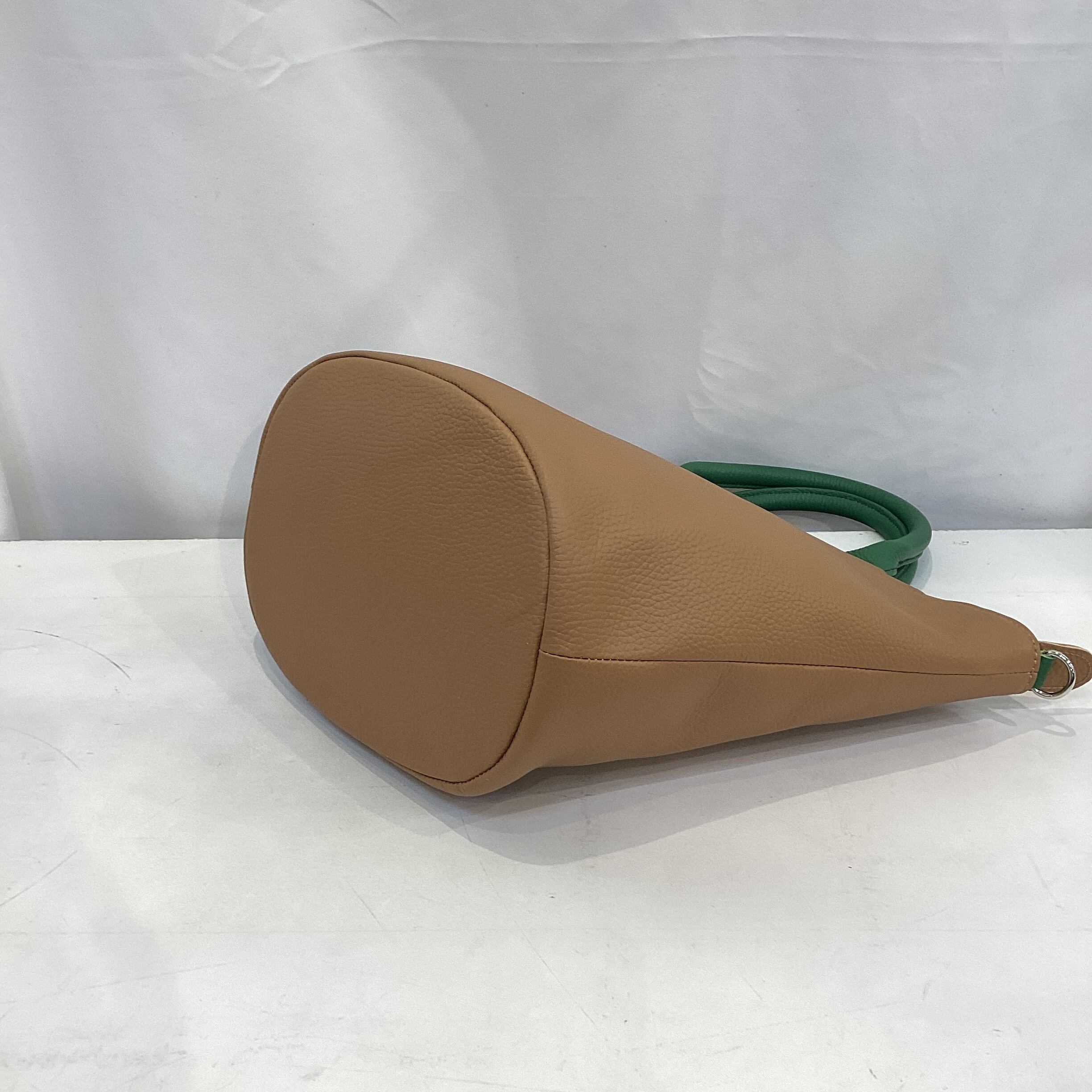 バケツ型のデザインとやわらかい革質がマッチした可愛らしいバッグです。