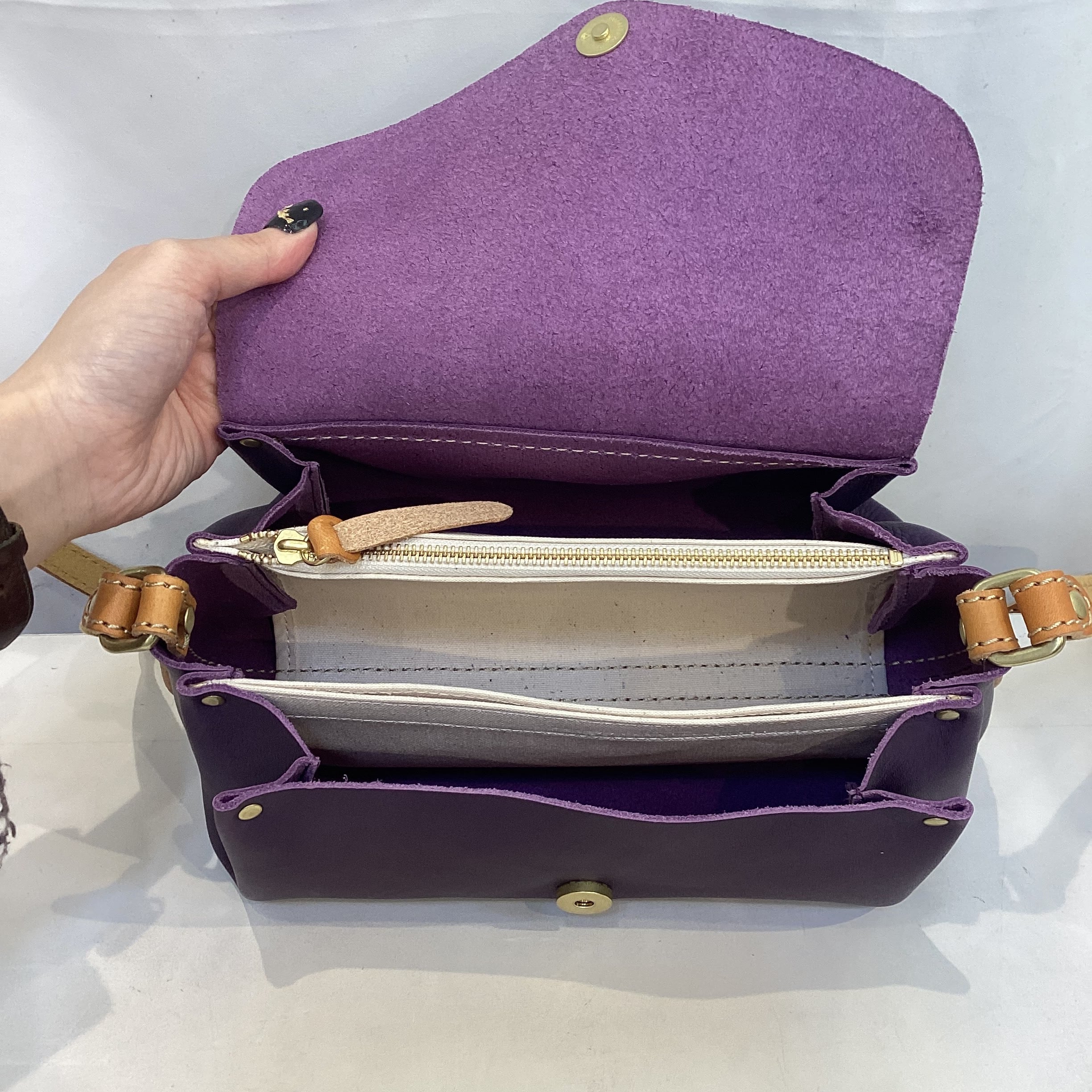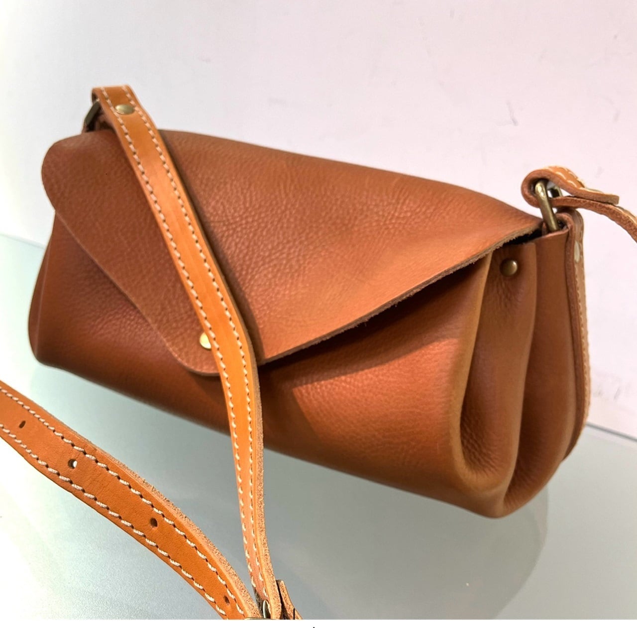 ・天然の皮革で作られた収納力抜群のショルダーです