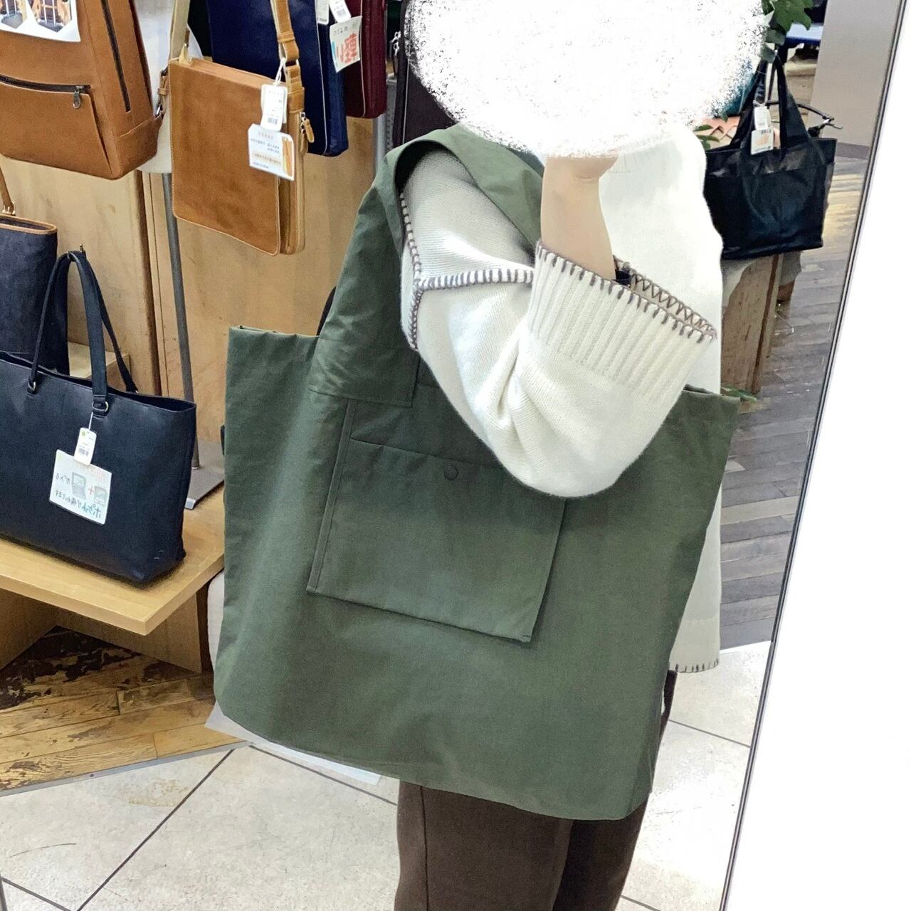 【日本製】たためるナイロントートM(カーキ)105002