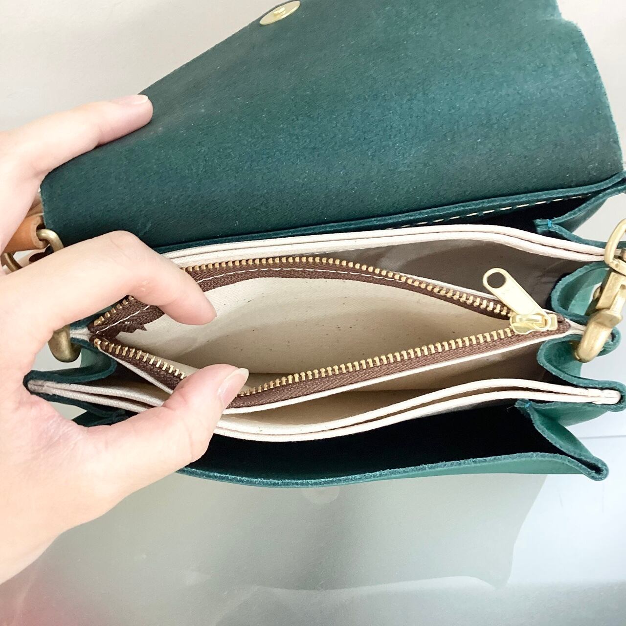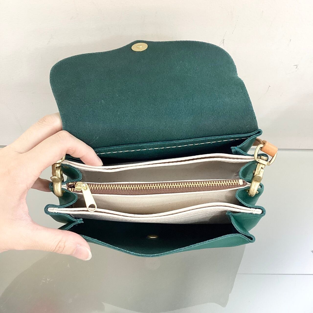 ・天然の皮革で作られたお財布としてもお使いいただけるポシェットです