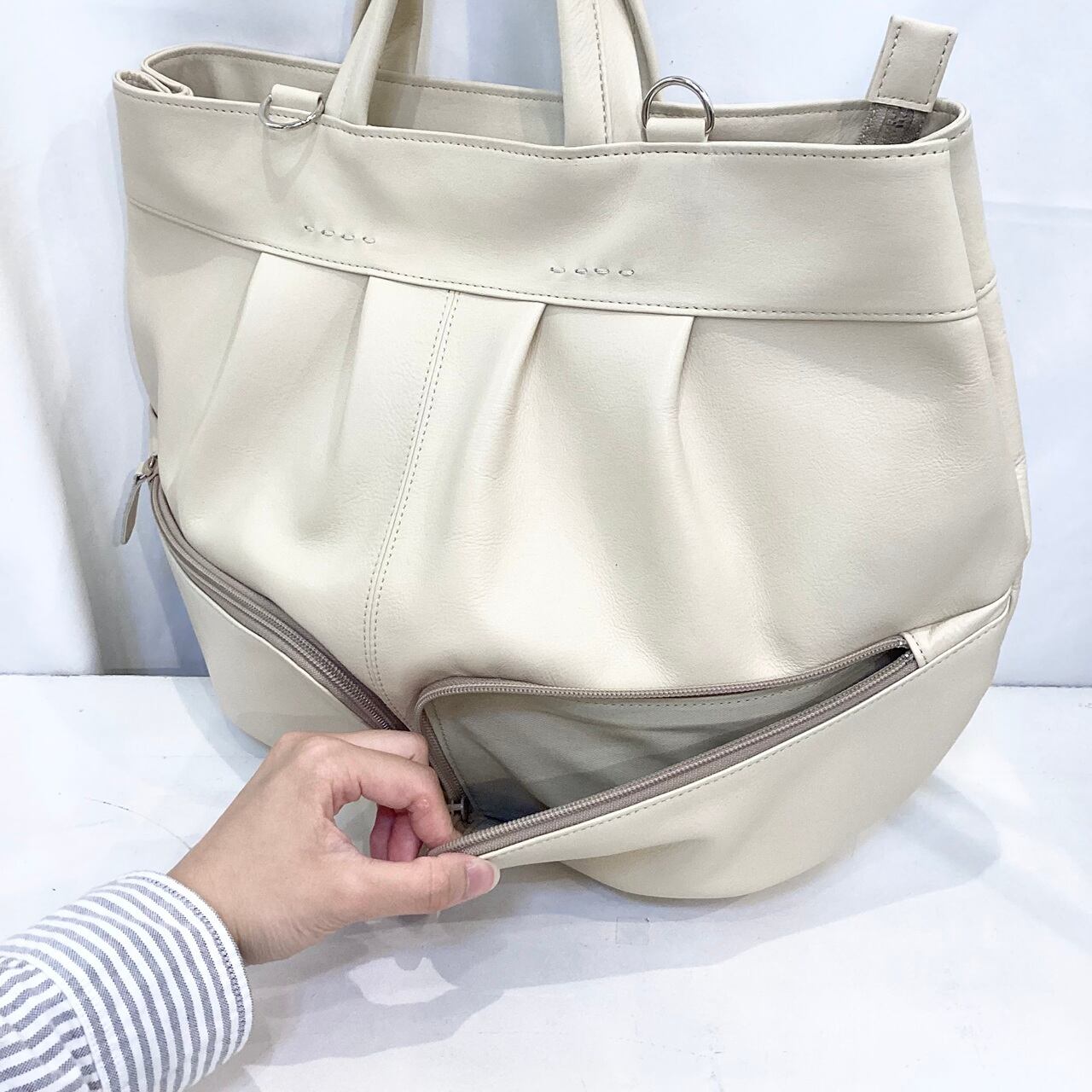肩ひもを交差するだけで可愛いリュックに変身します。