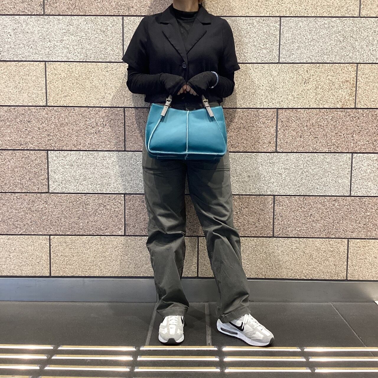 外縫いでの縫い合わせがカジュアル感を出している可愛らしいハンドバッグです。